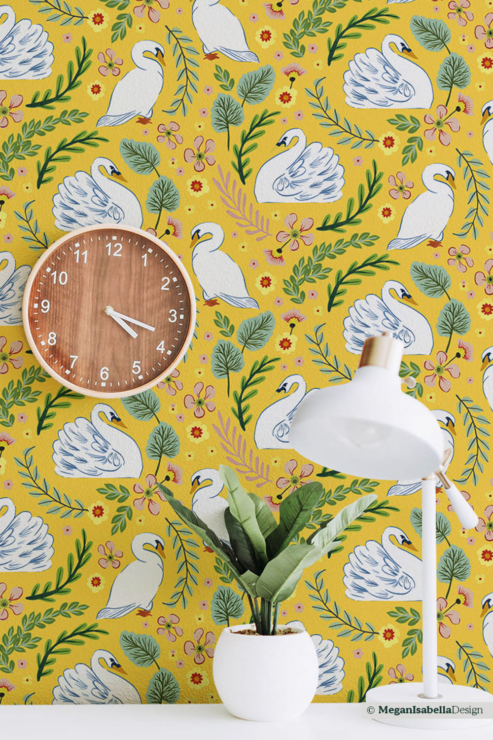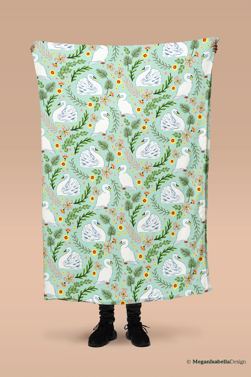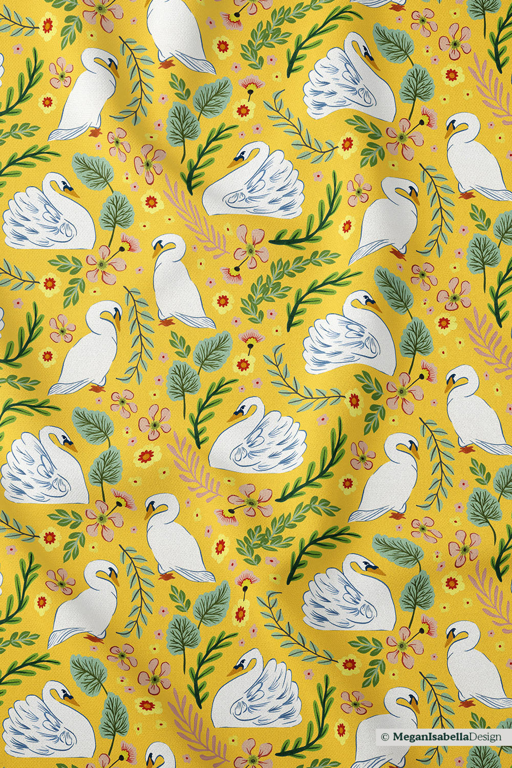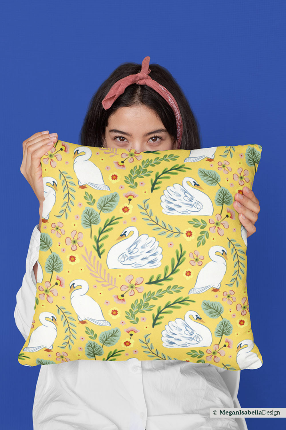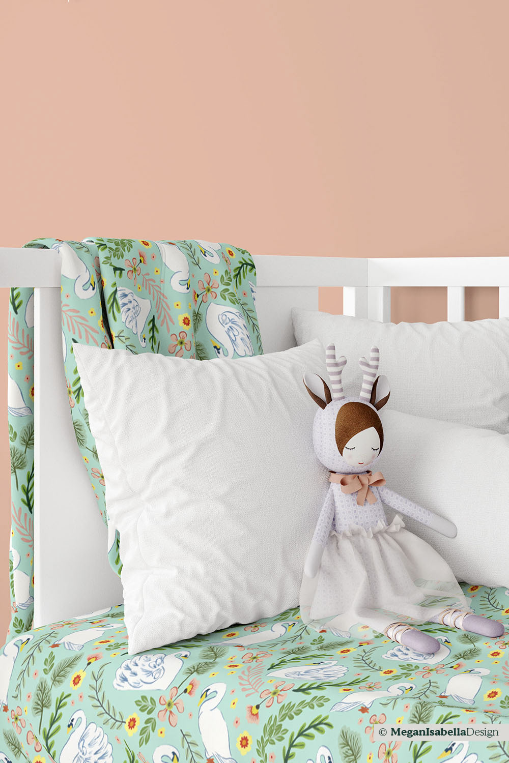 Take a ride through fairytale Europe with the Swan Lake pattern. Beautiful white swans floating effortlessly on the water makes this the most delightful print for bedroom decor.